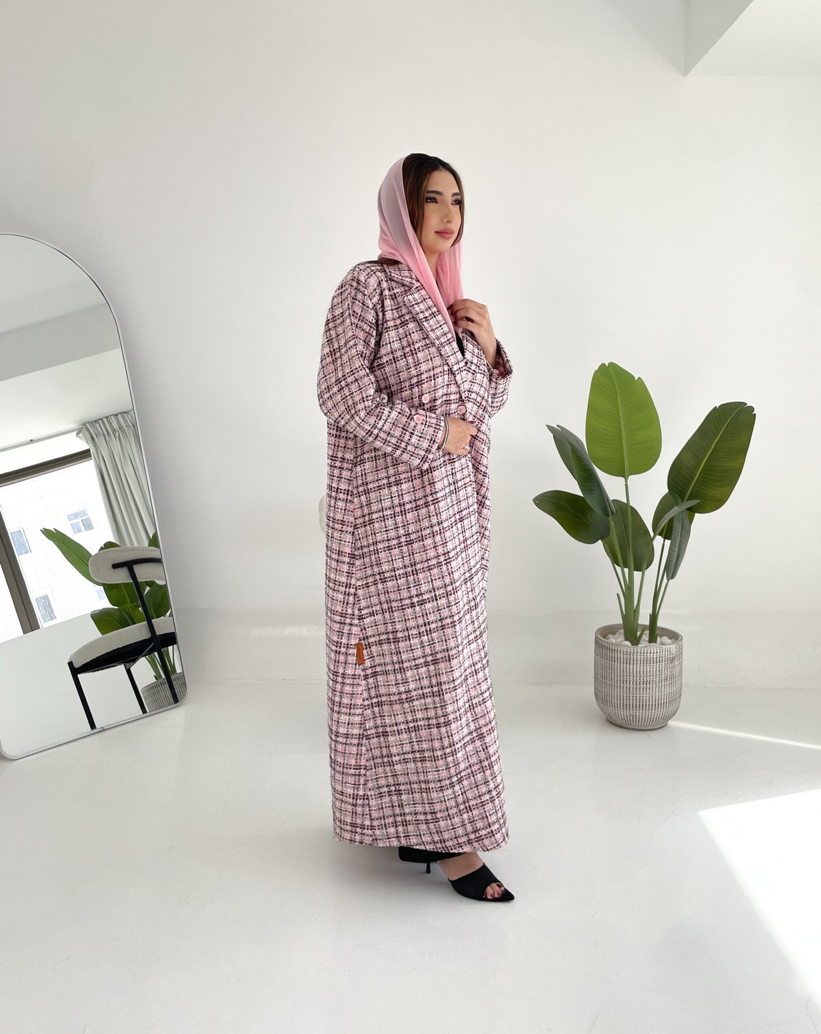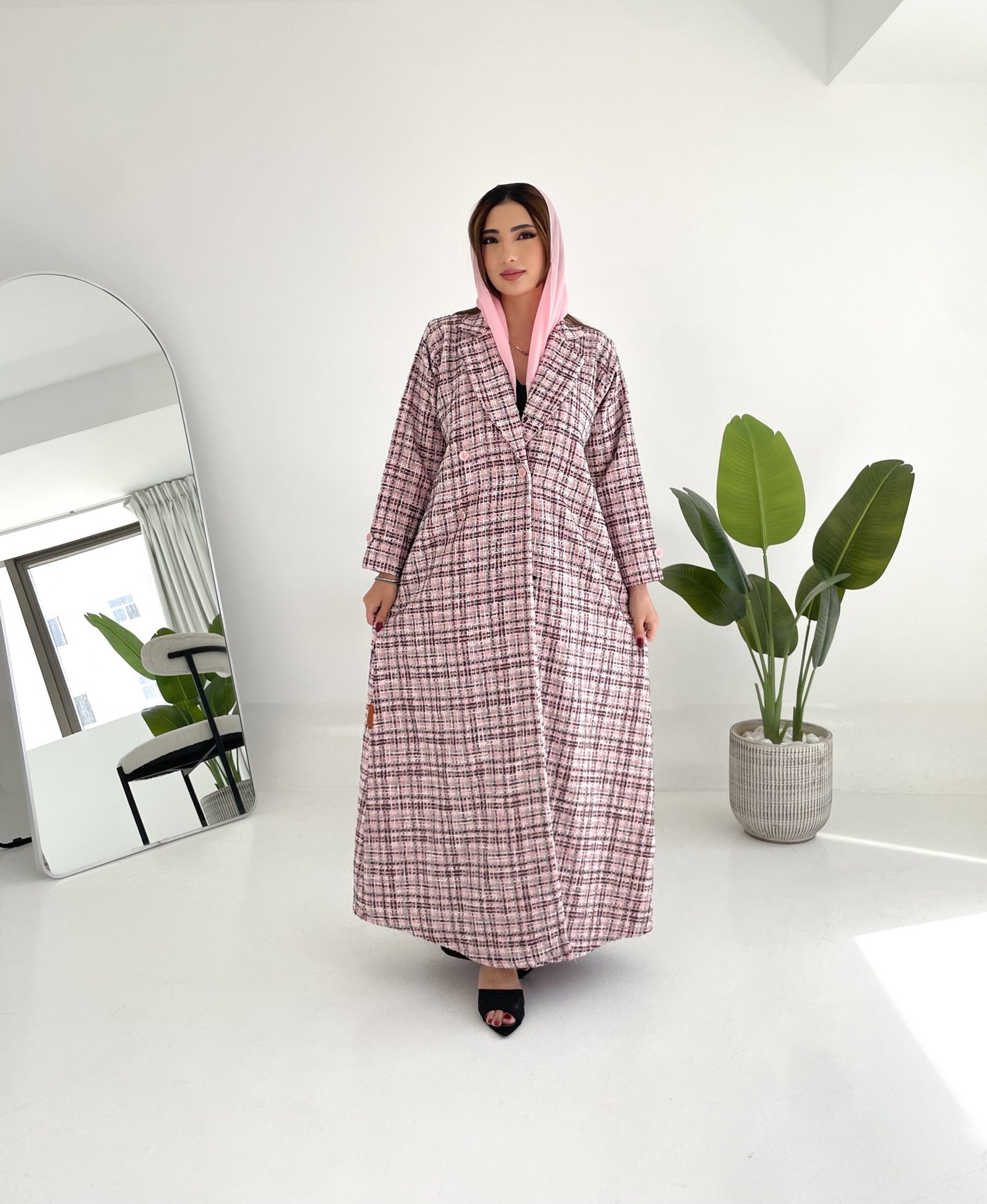 بليزر, وردي مع تداخل خيوط باللون الأسود, قماش شتوي.