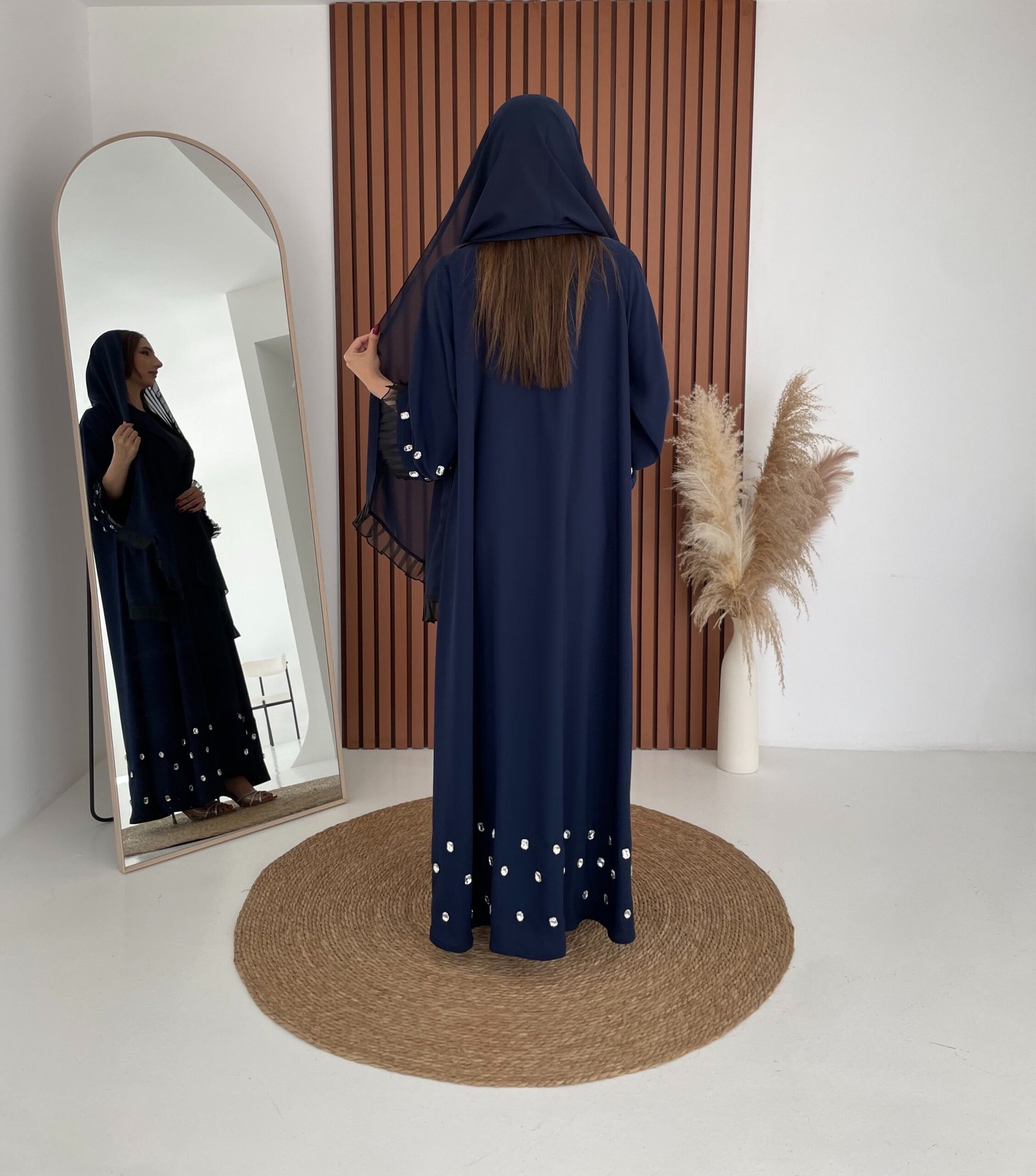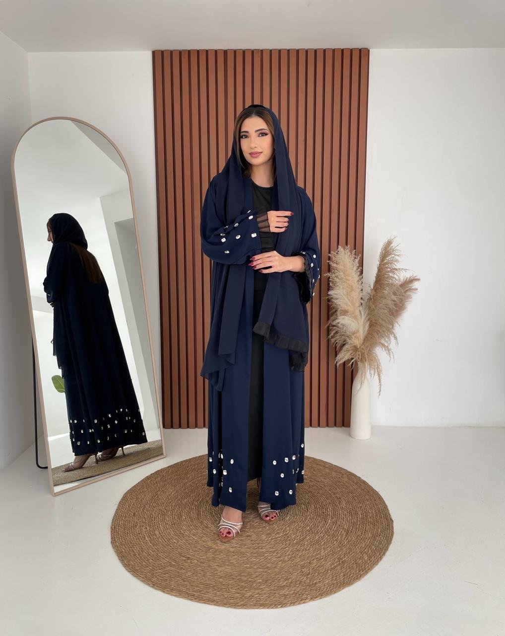 عباية مناسبات ,دبل كلوش , تطريز كرستال اللامع مع دانتيل اسود خفيف .